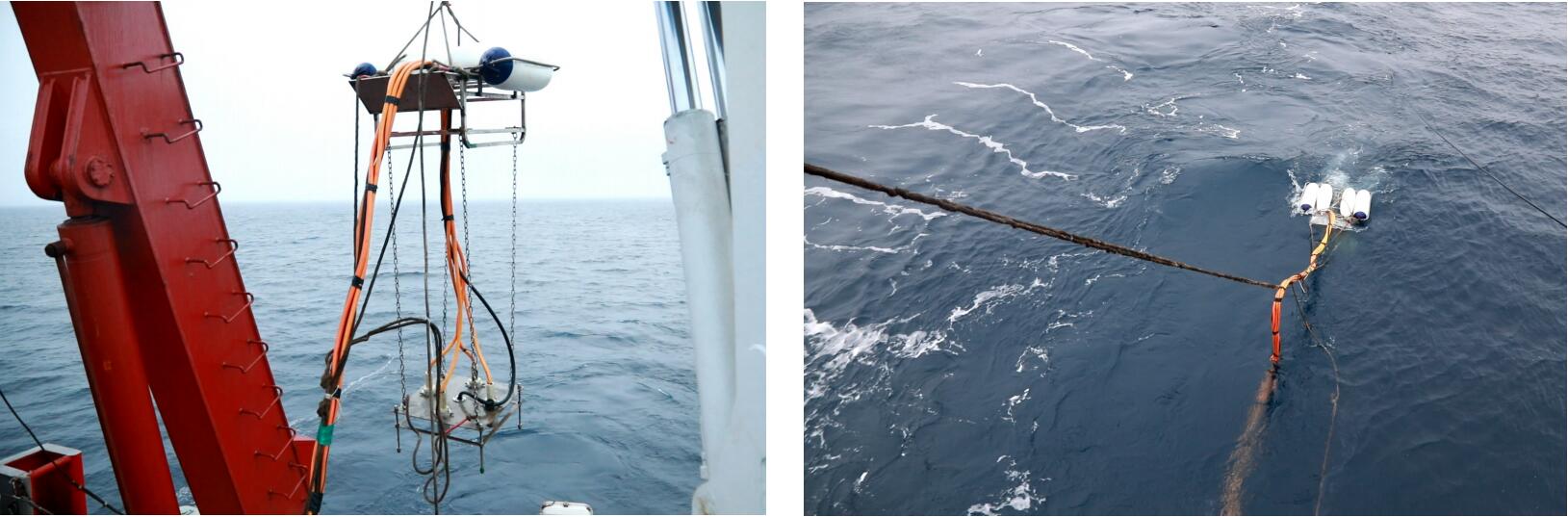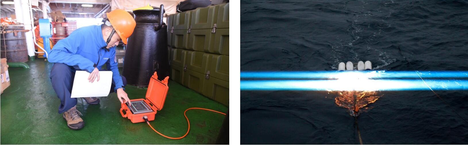 科考人員操作電火花震源 電火花震源放炮瞬間