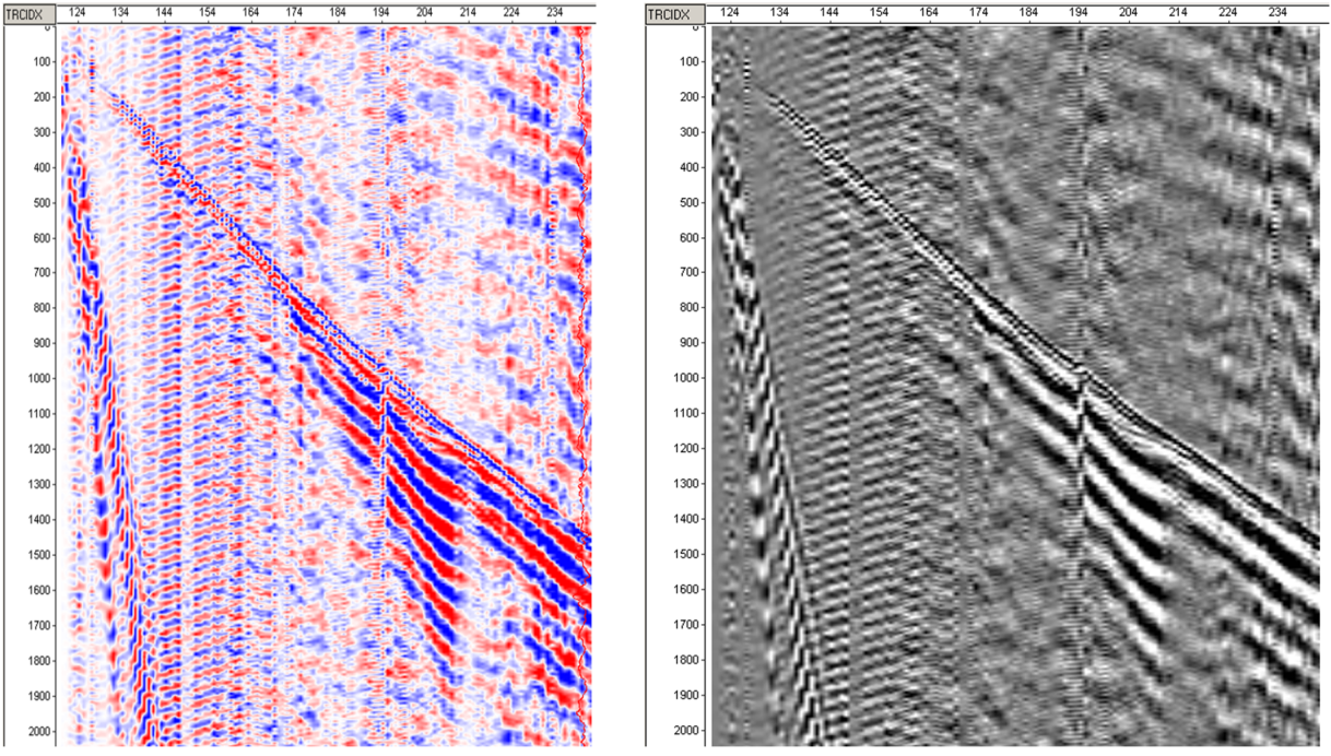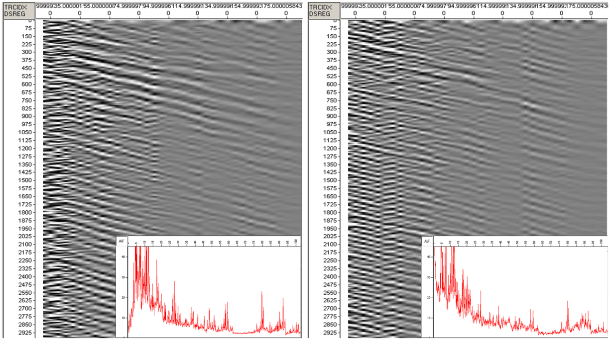地面排列原始記錄(排列單邊長度3000m)帶通濾波(2-7-50-100Hz)